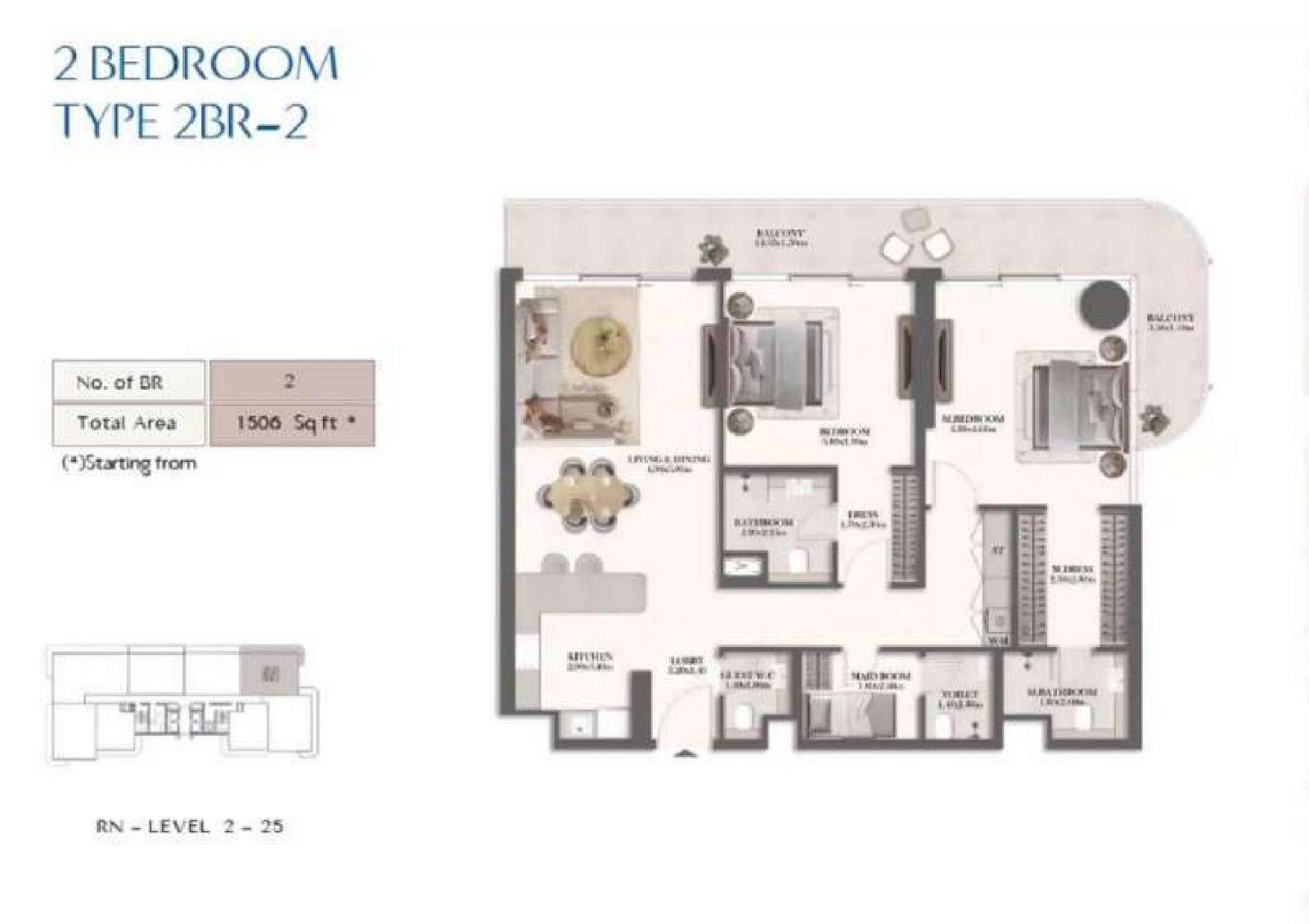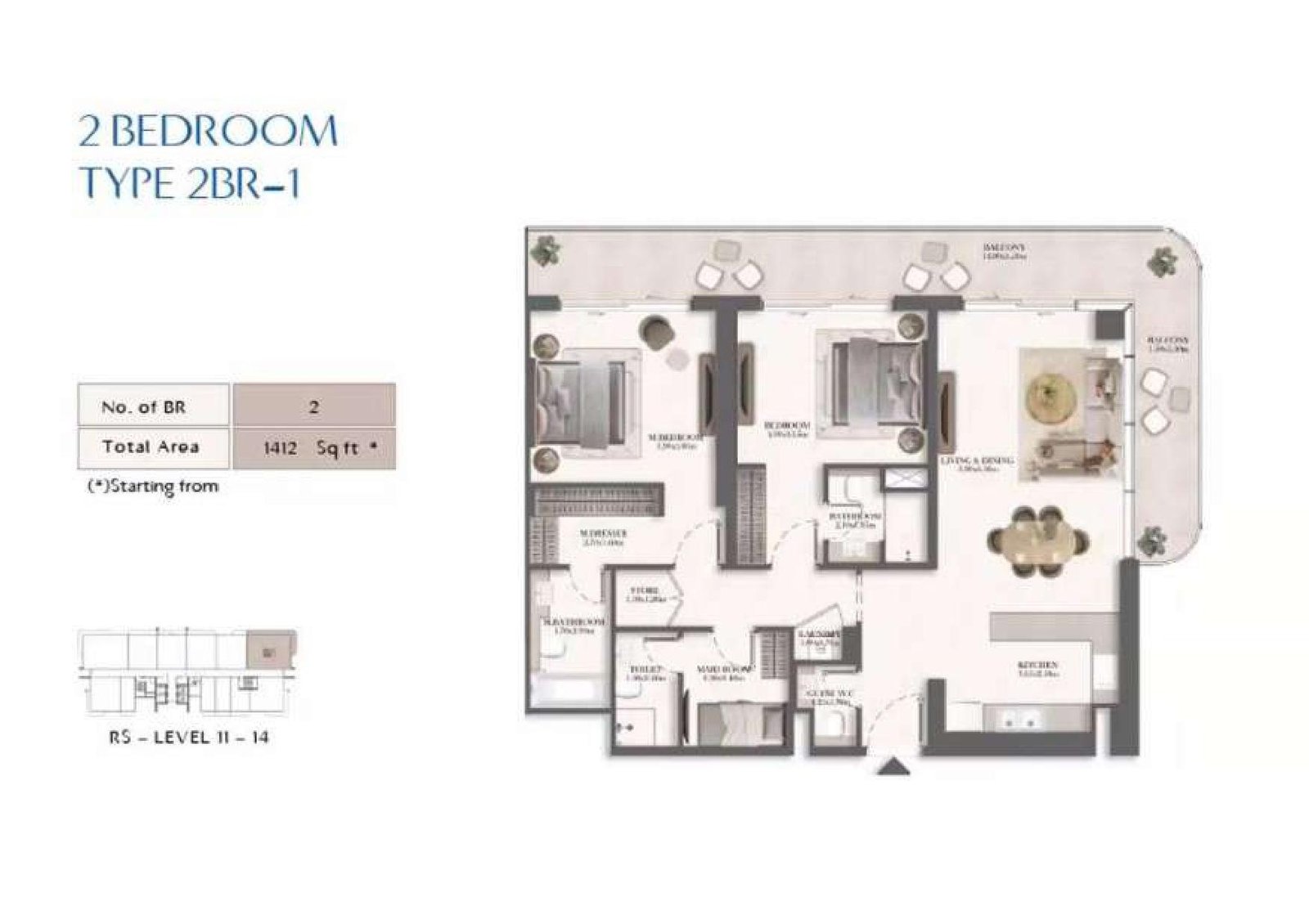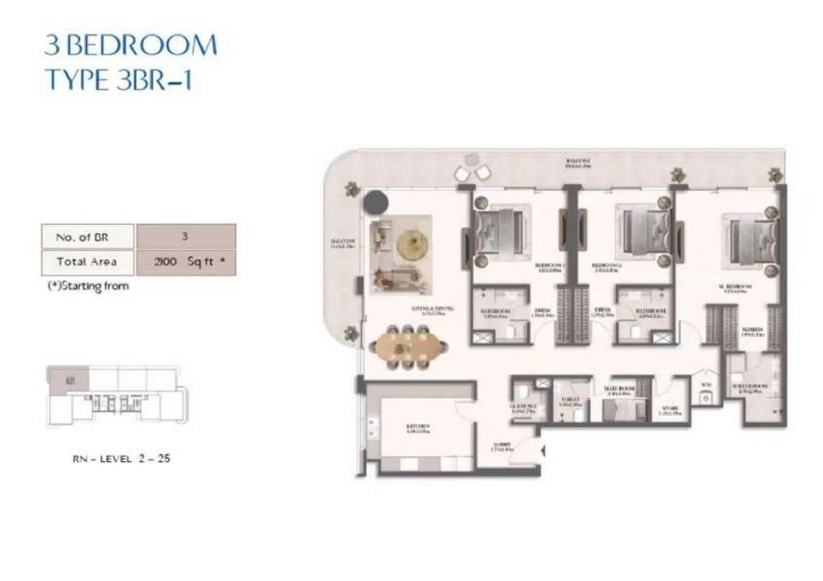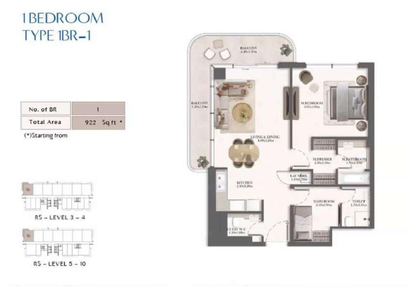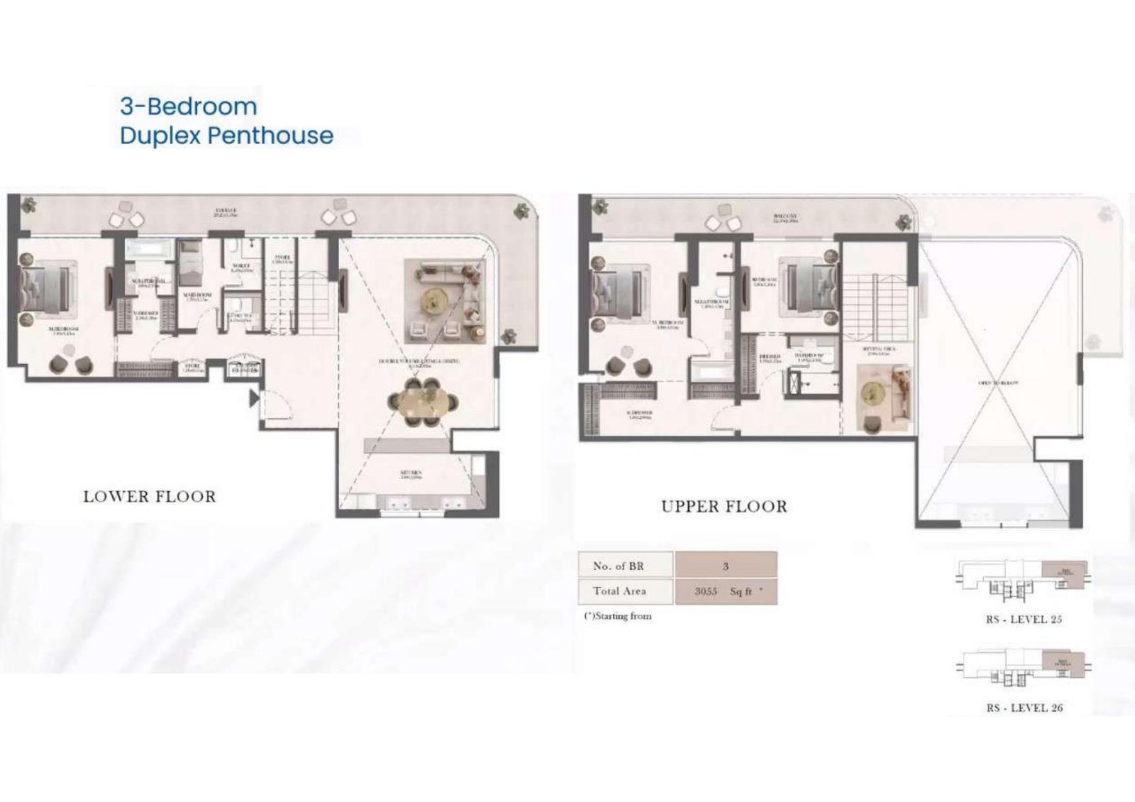 • Prices start at 1.608M AED for 1 bedroom, 2.338M AED for 2 bedroom, 3.695M AED for 3 bedroom, and 8.5M AED for a duplex penthouse.